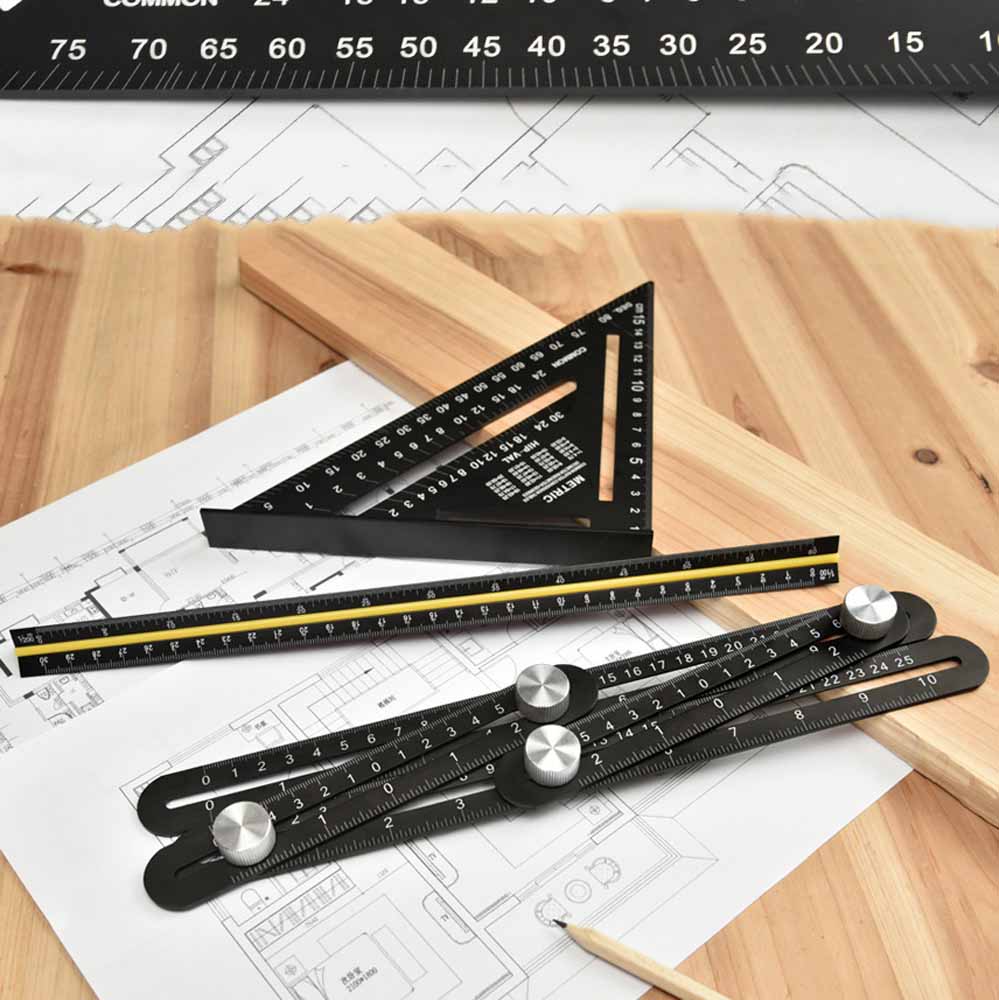 - অ্যালুমিনিয়াম অ্যালয় দিয়ে তৈরি ত্রিমাত্রিক রুলার, ফোল্ডিং রুলার এবং সাধারণ রুলারের সেট।