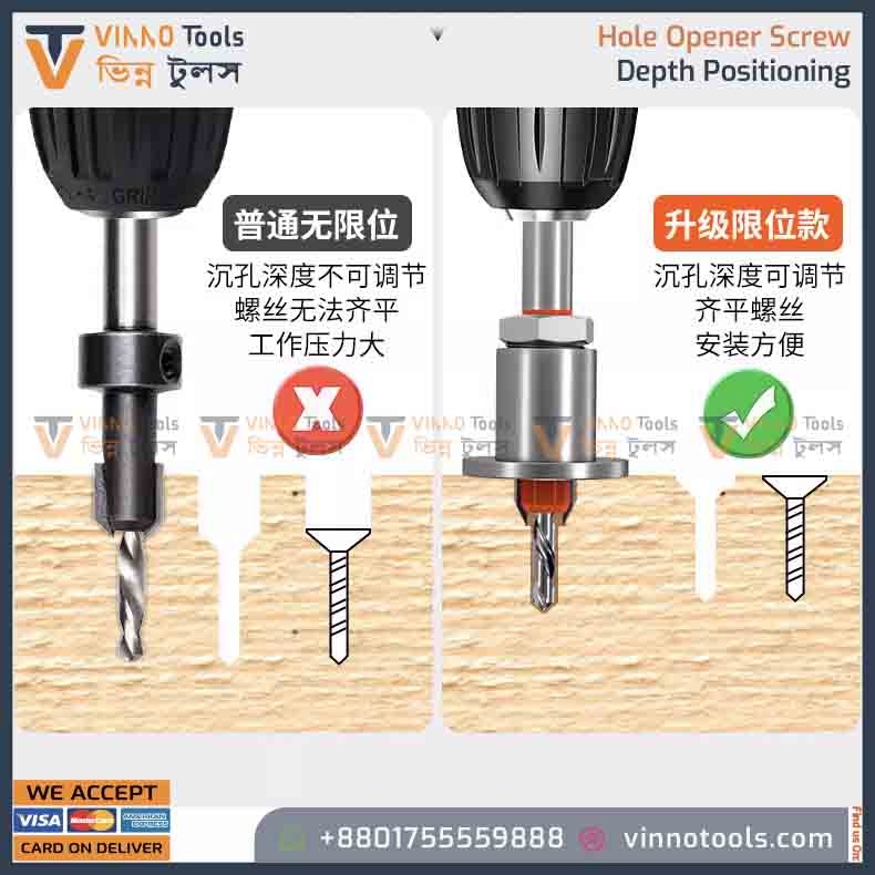 স্ক্র লাগানোর সময় ছিদ্র কি বেশি গভীর হয়ে যাচ্ছে? আর চিন্তা নেই! নিয়ে এলাম Adjustable Depth Positioning Hole Opener, যা আপনার প্রতিটি ড্রিলিং হবে একদম নিখুঁত এবং মেজারমেন্ট অনুযায়ী।