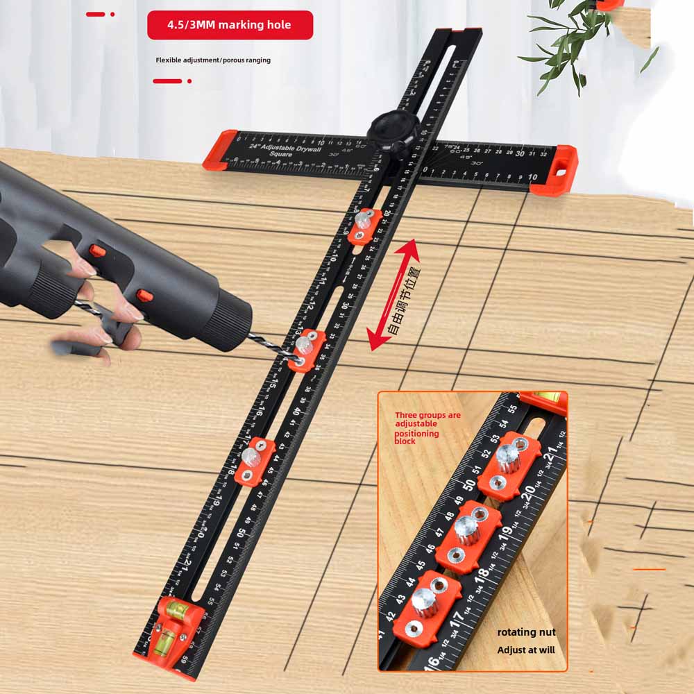Woodworking Multifunctional T-Ruler Two-in-One Drilling Positioning Ruler